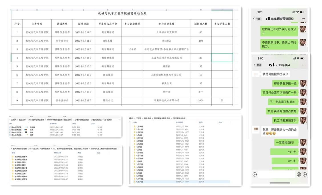 首先,落实就业“一把手工程”,公司坚持以党建为引领,分阶段召开就业专题会议,班子成员专题讨论今年就业工作,分析研判就业形势,做好系统设计。为保证公司就业工作扎实推进,积极落实三方推进机制和协同联动机制。公司班子成员共召开各类就业推进会20余次,公司就业工作推进会每月一次、系室就业工作推进会两周一次、学办就业工作推进会每周一次,形成公司与各系、辅导员与导师协同联动促就业机制,确保就业实效。其次,强化过程管理。编制公司就业工作倒推表,设立系室、辅导员就业率排行榜,层层压实责任,扎实有序推进就业工作。再次,强化系室、辅导员考核激励机制建设。公司把就业工作与系室考核相挂购,要求以系室为单位全员参与就业工作,充分激发专业课教团队源,释放就业联动最大潜能,同时将就业率作为重要考核指标纳入辅导员年终考核中,形成全院上下勠力同心促就业的良好局面。