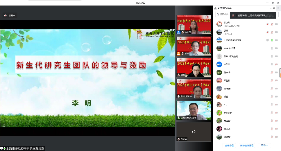 为进一步明确研究生导师职责担当,强化研究生导师立德树人的意识和责任,提升研究生导师指导水平,保证公司产品质量和研究生教育工作的管理质量,6月23日yl6809永利邀请上海市委党校领导科学教研部(人力资源测评中心)副主任李明教授开展线上导师培训,本次培训会的主题是“凝聚团队力量、共同开创未来”。研究生处处长张华、公司领导班子、全体研究生导师参加了会议本次导师培训会,副经理郭辉主持会议。