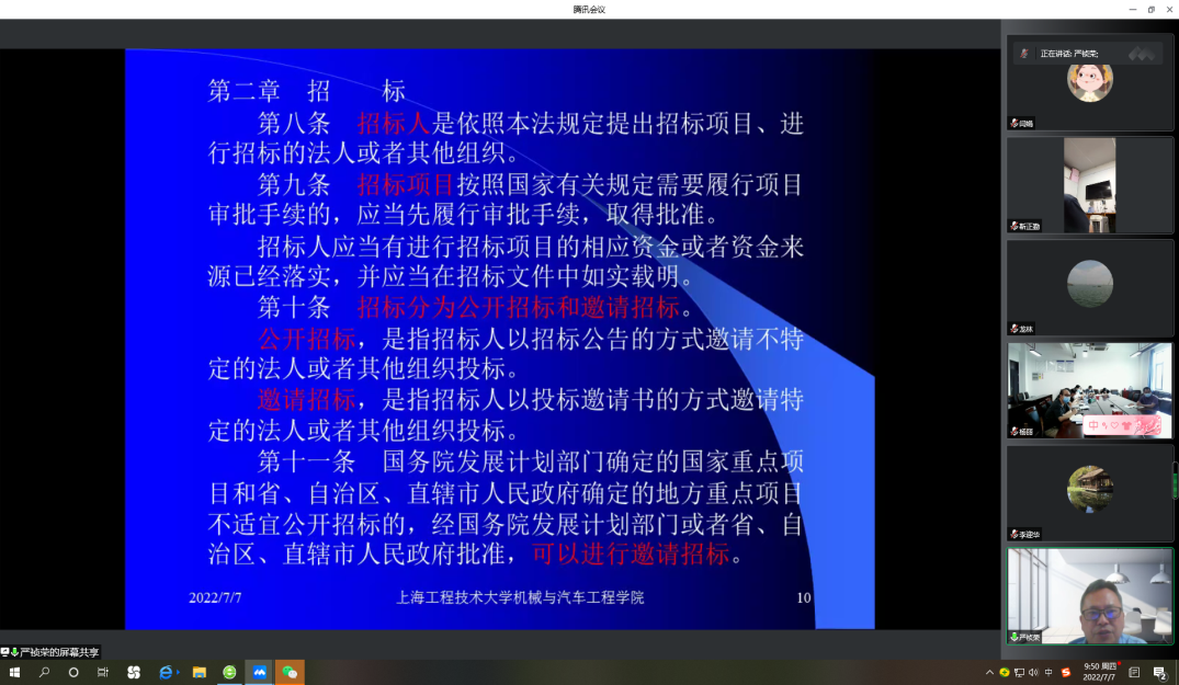 7月7日上午,公司召开了招投标相关法律法规制度及案例培训会。会议由实验中心主任马西沛主持,副经理严祯荣、各系室分管主任及实验中心全体教师以线上线下相结合的方式参加了本次会议。