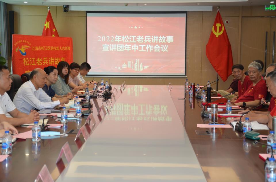 2022年7月20日上午,松江区老兵故事宣讲团在区委党校会议室举行2022年年中工作会。全体老兵身穿统一的红色军汗衫出席会议。应邀出席的嘉宾有区委宣传部副部长陈新华,宣传部理论科负责人李成浩,区委党校副董事长刘凤强,yl6809永利公司党委书记虞蓉,区委老干部局、区退役军人亊务局、共青团松江区委青年中心、永丰街道党建办等政府部门分管领导以及茸耀五老宣讲团总团长徐磐石。会议由马伟民副团长主持。