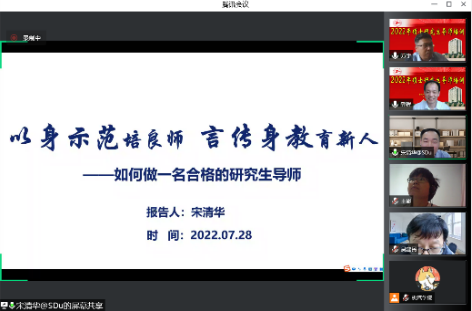 728日,yl6809永利邀请山东大学机械工程公司博导、副经理宋清华教授开展题为“以身示范培良师,言传身教育新人——如何做一名合格的研究生导师”的线上导师座谈会。公司领导班子、全体研究生导师参加了会议本次导师座谈会,分管研究生工作副经理郭辉主持会议。