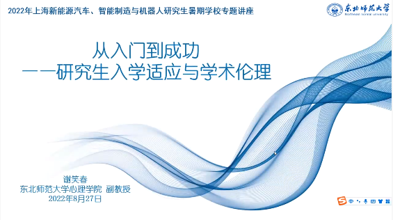 2022年8月27日13:00-15:00,通过华为云会议视频平台,东北师范大学副教授、中国心理学会网络心理专业委员会委员、国际行为发展研究会(ISSBD)会员谢笑春为暑期公司做题为《从入门到成功——研究生入学适应与学术伦理》的线上专题讲座。讲座由公司党委副书记王东阳主持。