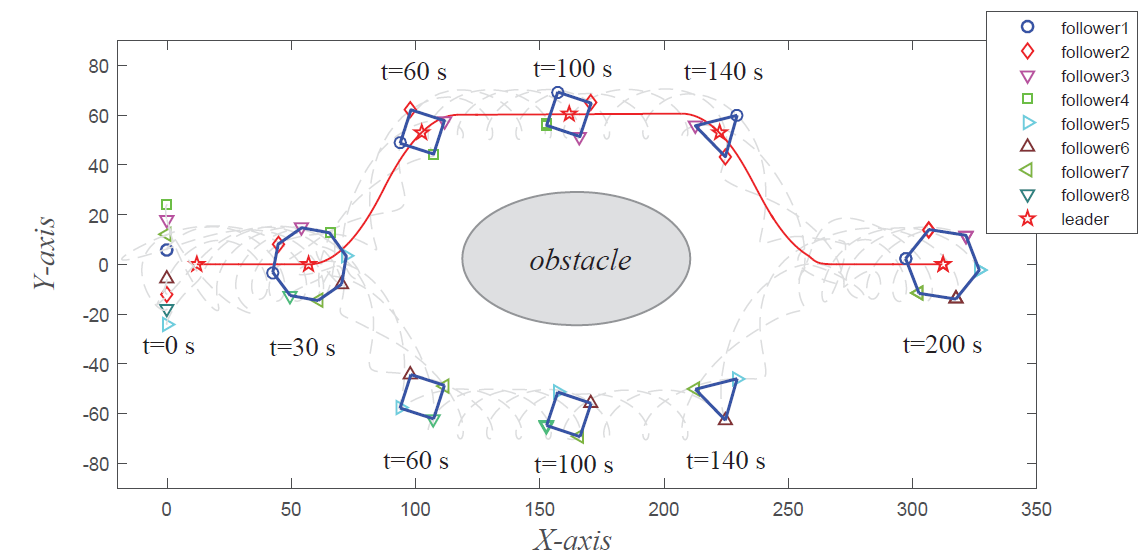 近些年来随着多无人机、多无人车等协同控制技术在军事和民用中发挥着越来越重要的作用,集群智能控制技术得到了飞速的发展,其中分布式多智能体编队控制技术是当前的一个研究热点。该文提出了一种新型的分布式状态观测器设计方案,使得多个智能个体在未知领导者输入的情况下实现一种具有对抗关系的编队队形。这一种编队队形包含两个位置时刻改变的子编队,且它们的编队几何中心具有对称关系。该控制算法仅利用智能体间的输出反馈信息,避免了通信网络图拉普拉斯矩阵的特征值的使用,从而可以实现分布式编队控制。在仿真部分,通过使用多无人车编队的实例展示了该分布式算法的可靠性。该项研究得到国家自然科学基金项目(61991412,61803256,62003207,61873318)的资助,合作者为华中科技大学苏厚胜教授和yl6809永利李晓航副教授。