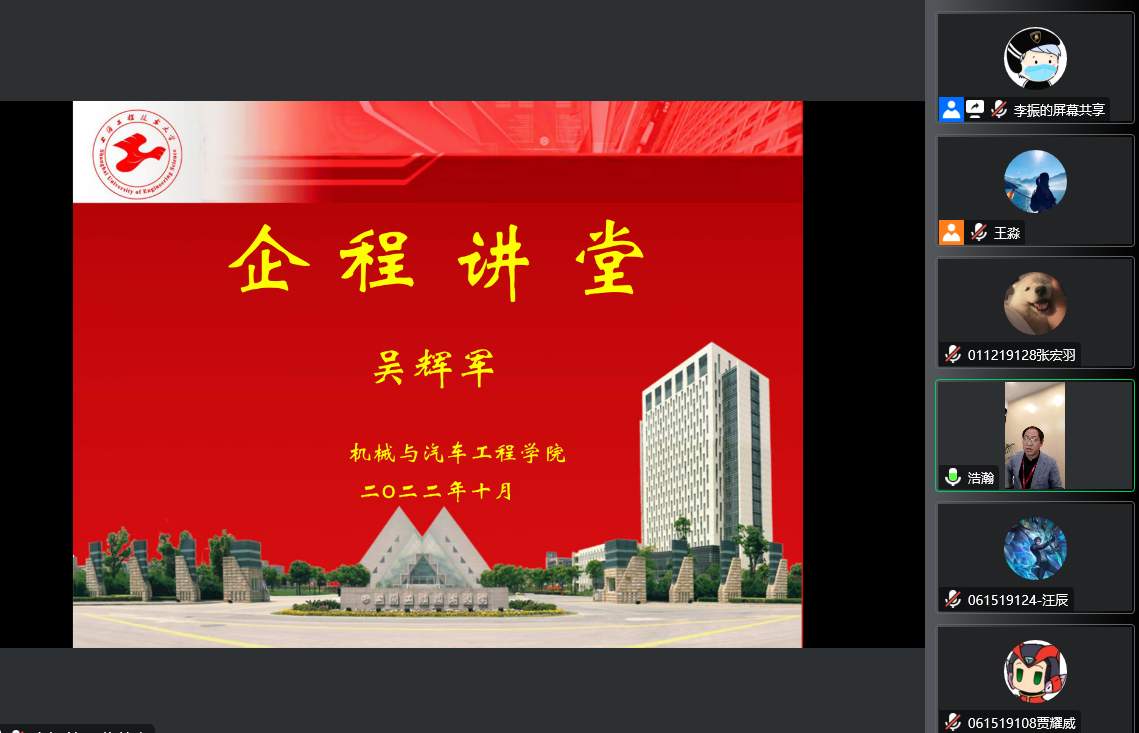 吴军辉经理有着近十年的教育培训行业管理工作,对老员工就业指导、职业生涯规划具有丰富的实战经验。在讲堂中,他从中国汽车工业发展四阶段讲起,带领大家一起分析了目前新能源车辆发展的新趋势,他指出目前汽车类岗位对于人才的需求量巨大,鼓励同学们求职过程中要有信心。
