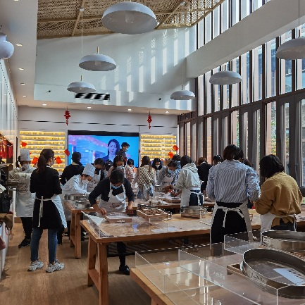 “叶榭软糕”是上海米糕的起源,始于明万历年间,2011年被列为上海非物质文化遗产,当前更成为“上海味道”的代表,是不少松江人走亲访友必备的伴手礼。在“八十八亩田”欢乐体验场,将活字印刷和叶榭软糕完美结合,赋予软糕更多美好的寓意和乐趣。在聚精会神地听完讲解后,大家都跃跃欲试。在老师傅们的悉心指导下,大家挑选模具、筛粉、点坑、挤馅、铺面、脱模,并将制作好的软糕送入蒸锅,一盒盒热气腾腾的软糕新鲜出炉,百年的悠悠余味,便藏于这方寸之间。