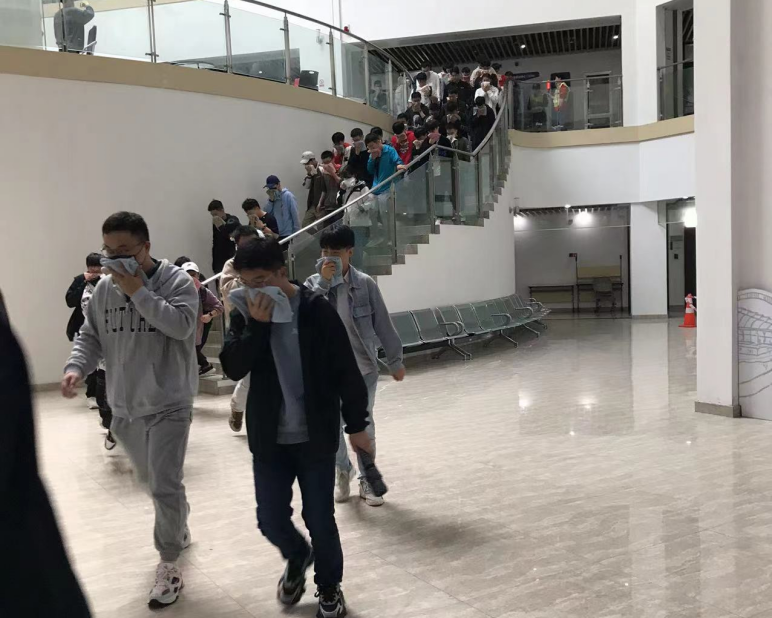 本次消防逃生演练模拟了8B325实验室发生火灾,师生紧急疏散。演练开始前保卫处吴挺老师给全体师生进行了简短的安全教育,指出了实验室目前存在的一些安全问题,近年来部分高校出现的安全事故,目前公司实验室常见的安全隐患,比如电瓶车实验室内充电、插排串接、违章电器等,同时讲解了灭火器等消防设备的使用方法。演练开始后,各楼层导护教师协助安抚稳定员工情绪,指导帮助员工做出正确逃生姿势。消防逃生过程紧张、有序,师生们用湿毛巾捂住口鼻,弯腰小步快走,按照预定的安全路线进行有序撤离。