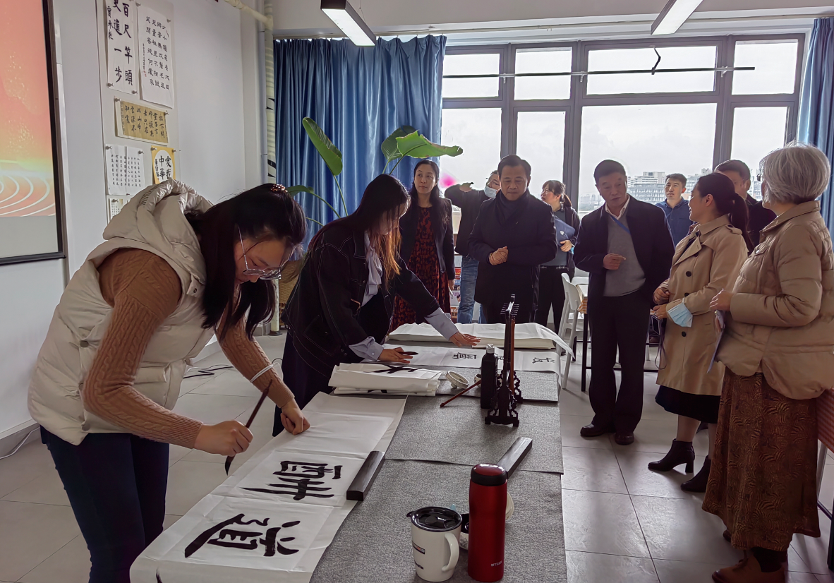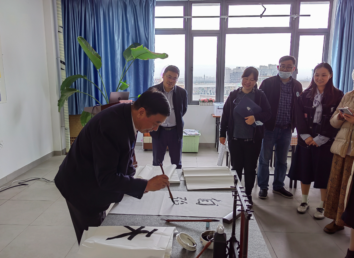 校关工委副主任、校老教授协会副会长陈力华现场挥毫