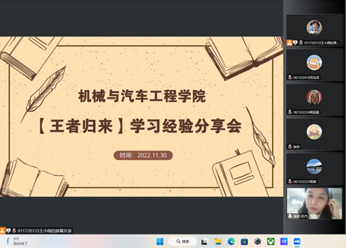 为进一步推动优良学风建设,强化受资助员工的感恩意识,充分发挥优秀员工的示范引领作用,11月30日,公司召开“王者归来”学习经验线上分享会。分享会由公司事务辅导员李适老师主持,公司国家奖学金、上海市奖学金获奖员工代表及2022级新生出席了本次分享会。