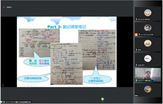 2019级汽车服务工程专业的陈存同学,从自我规划和个人学习经验两方面开展分享,重点介绍了几位热门选课老师的授课特色和网络学习资源。来自2019级机械设计及其自动化专业的唐婉同学,用自己丰富的实践经验,为大家讲解了在校期间如何参与科创竞赛,以及如何平衡学习和竞赛关系等问题。她鼓励同学们积极参加科创比赛,勇敢尝试突破自己,在专业实践中实现自我提升,并朝着“复合型人才”的方向努力。2019级能源与动力工程专业的赖方也同学分享了让知识融会贯通的奥秘,提出老员工要摆正学习态度,掌握学习知识主动权,勤记课堂笔记,将知识运用于实践。在结束时,他借用习主席的话“青年强,则国强,当代青年生逢其时,施展才干的舞台无比宽阔,实现梦想的前景无比光明”激励同学们努力奋斗,树立远大理想。