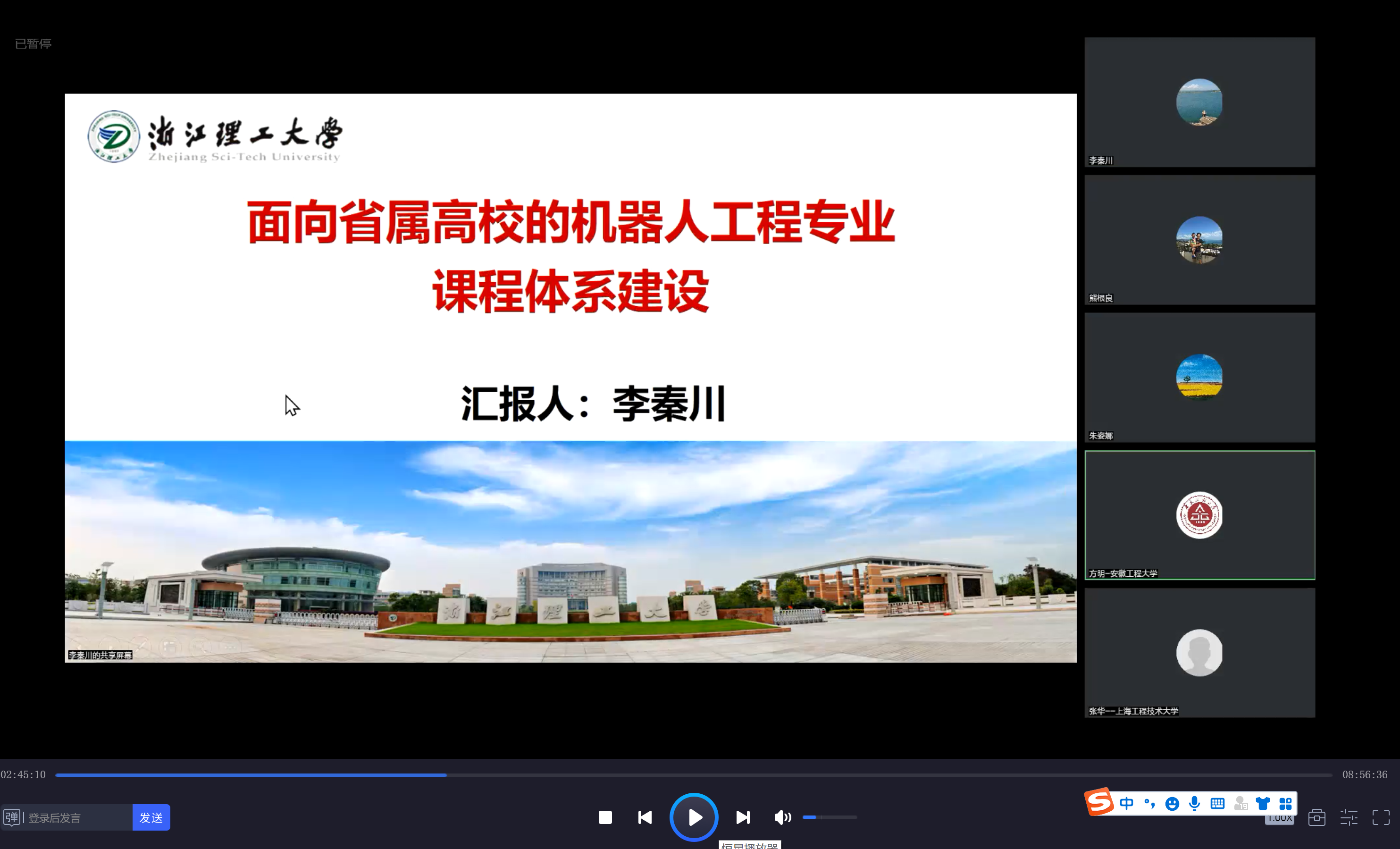 国家杰出青年科学基金获得者、科技部中青年科技创新领军人才、浙江省优秀教师、浙江省五一劳动奖章获得者、浙江理工大学机械工程公司经理李秦川教授以《面向省属高校的机器人工程专业课程体系建设》为题,介绍了机器人工程专业课程体系存在的问题、课题体系建设的举措以及课程体系建设的工作重点等,详细的阐述了浙江理工大学机器人工程专业在课程体系方面取得的卓有成效的工作。