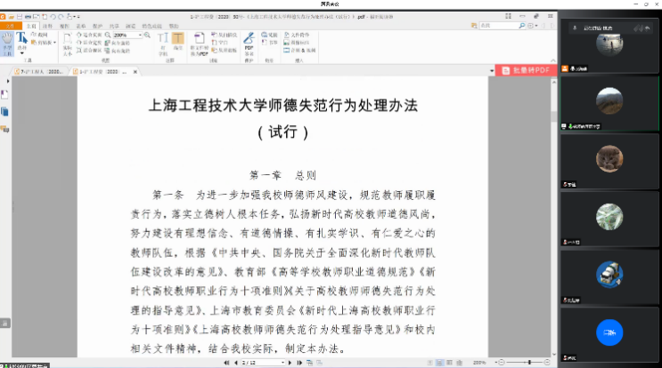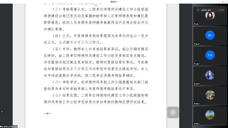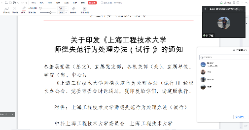 (1)对师德失范行为、组织与程序、师德失范行为处理、监督与问责等进行了详细的学习,促使老师们在工作中能够严格规范履职行为, 落实立德树人根本任务,弘扬新时代高校教师道风尚,做一名有理想信念、道德情操、扎实学识、仁爱之心的合格教师。