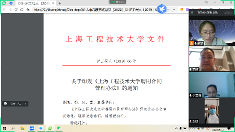 (4)学习了教职工考勤请假制度,表示在今后的工作中要依律依规履行考勤请假制度。全面了解了聘用合同的订立、变更、终止和解除、争议处理等聘用合同管理流程,合同法律意识得到了加强。
