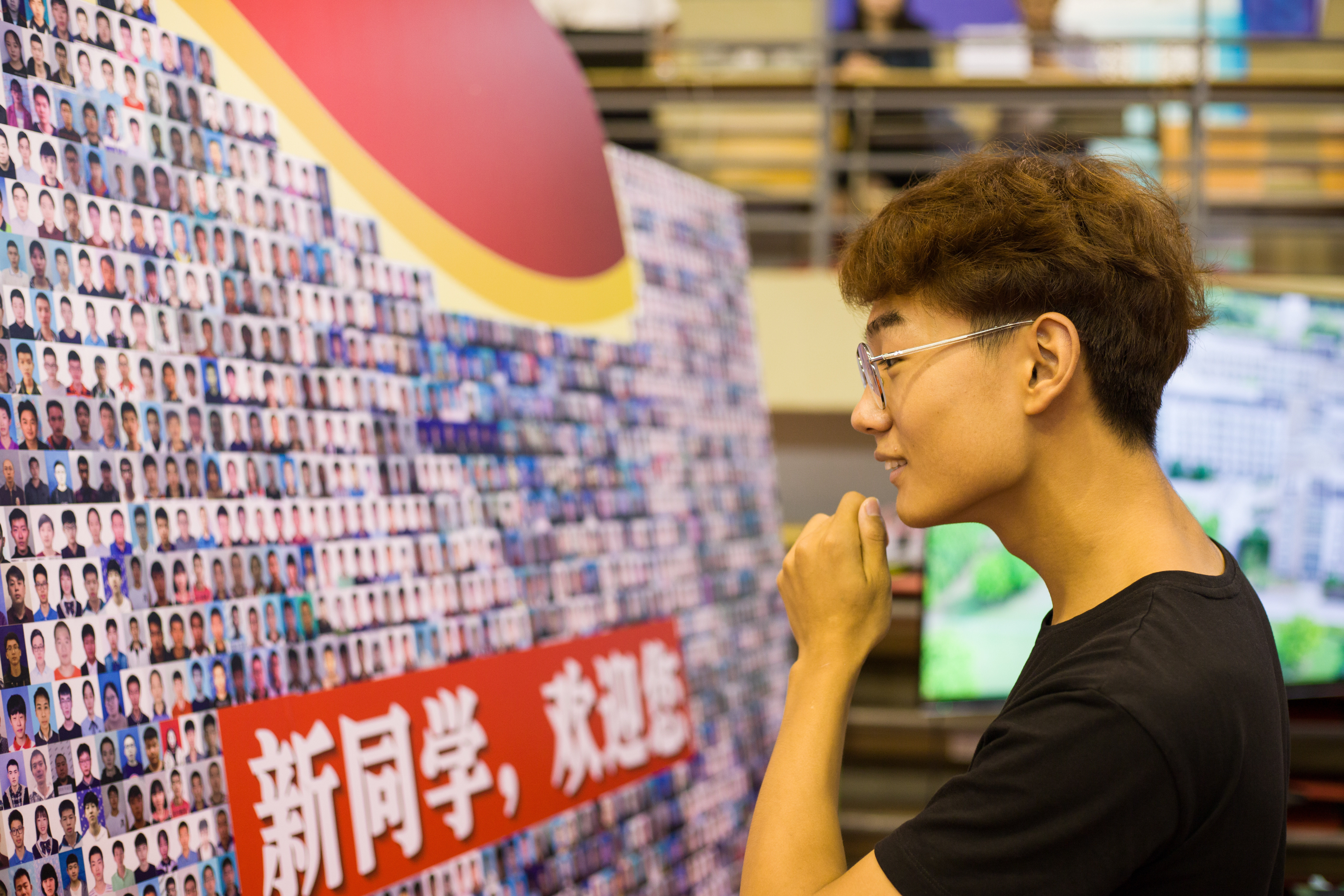 迎新活动现场的工作人员们为新生拍下入学后的第一张照片,为不远千里茫茫人海中相逢在此的缘分添上一道凭证,为往后漫长的四年时光留下初见时的珍贵纪念。