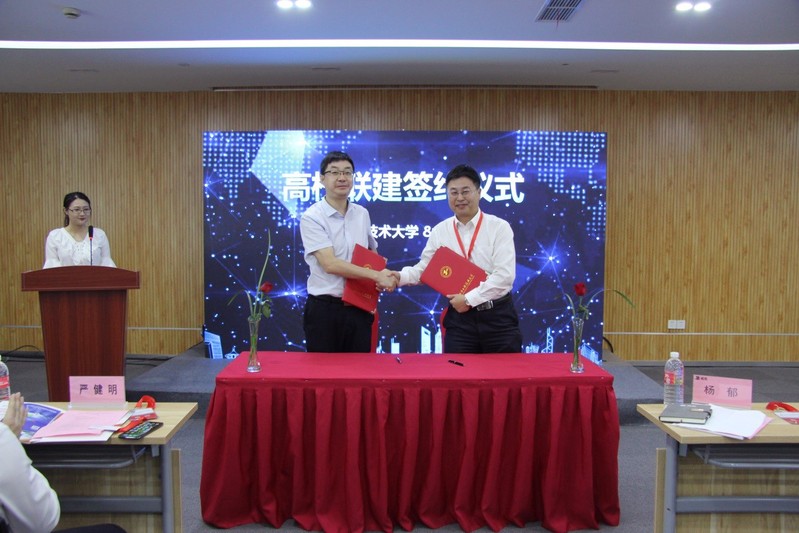 王岩松副董事长与威凯公司的总支书记、副总经理杨郁进行了会谈,双方表示在人才培养、科学研究、产学合作、资源共享等方面可进行深入合作,并代表双方签订了全面战略合作框架协议。