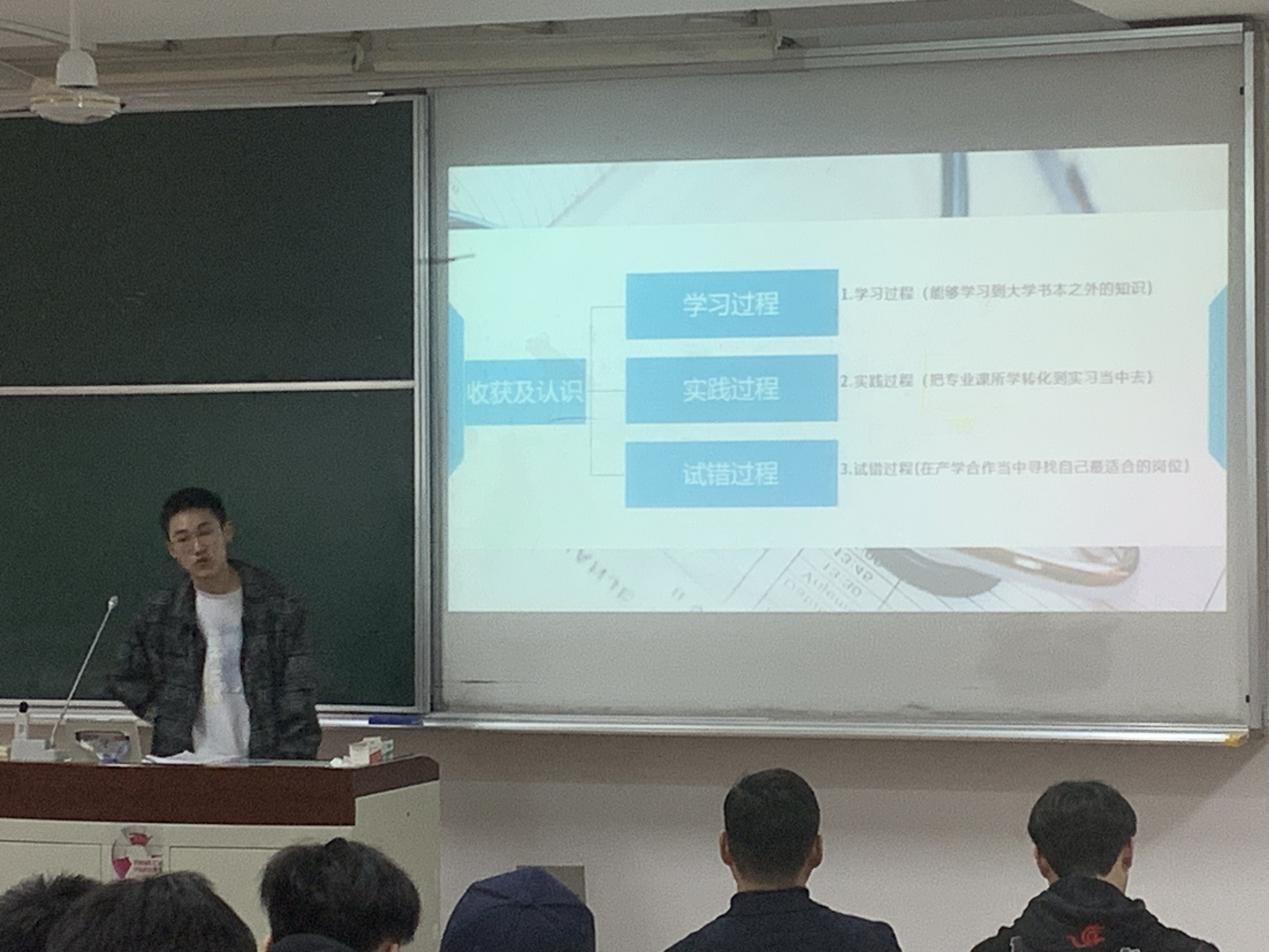 公司2022年产学合作优秀学员获得者代一帆向会与同学们做了经验分享,交流了做好产学合作教育的经验方法,分享了在企业实践中的收获与成长,并动员大家重视产学合作的机会,积极投入到新一轮的产学合作教育当中汲取营养。