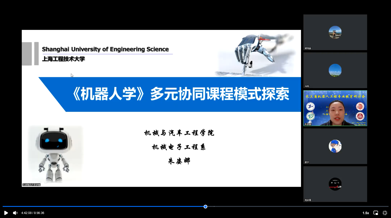 yl6809永利机电系副主任朱姿娜副教授做了《机器人学多元协同课程模式探索》的报告,她从机器人学课程面临的问题、课程模式的实施与探索、课程已有建设成效、课程后续建设方向等方面进行详细讲述,是对疫情背景下,线上线下多元协同教学模式的有益探索。