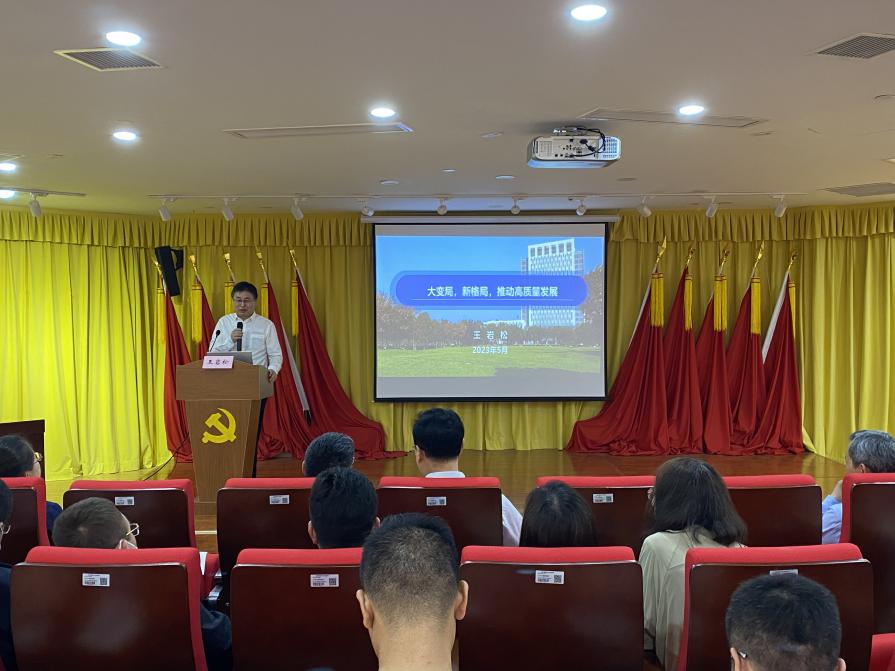 王董事长以《大变局,新格局,推动高质量发展》为题,重点从世界危机带来变局、中国经济面临挑战、上海未来的发展走向、公司发展把握机遇四个方面进行了深入讲解。他强调党的二十大报告中提到:要加快实施创新驱动发展战略,深入实施人才强国战略,面对新形势新挑战,公司要紧扣高水平科技自立自强使命任务,积极融入长三角一体化经济发展,提升团队建设水平和人才培养质量,要深入学习领会习近平总书记关于科技创新的重要论述和重要指示批示精神,引导党员深刻领悟“两个确立”的决定性意义,自觉增强“四个意识”、坚定“四个自信”、做到“两个维护”,为公司教育事业发展做出更大贡献。
