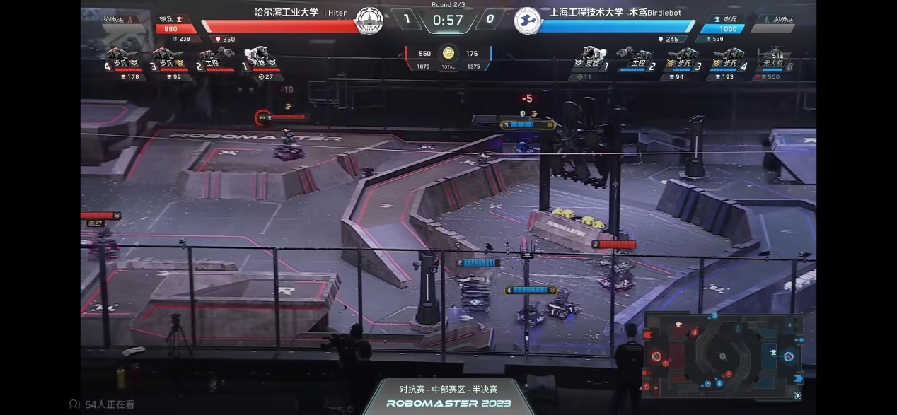 本次超级对抗赛•中部区域赛,yl6809永利员工科创中心机械创新基地联合教务处组织34名员工参赛。赛制采用小组循环赛和淘汰赛方式。木鸢Birdiebot战队在小组赛(BO2)中通过精妙绝伦的机械设计、众志成城的团队配合以及行云流水的操控技术均以2:0的战绩打败桂林信息科技公司GIRT战队、福建师范大学Pikachu战队、西南石油大学铁人战队,以小组赛第一的成绩出线,此番操作可圈可点获得官方专业人员的一致称赞。在16进8淘汰赛(BO3)时,工程操作手任力维同学高烧不退,在团队的鼓励和支持下,他凭借着自身坚强的意志吃着退烧药、贴着退烧贴、身披毛毯带病参赛,不但成功地为团队稳定地输出经济,还作为步兵的研发代表拿到了第三场的MVP,最终以2:0的战绩打败中国矿业大学CUBOT战队。在8进4淘汰赛(BO3)中,战队一鼓作气,再次以2:0的战绩打败西安电子科技大学IRbot战队,勇闯四强。在半决赛(BO3)中交战曾获2022年全国赛一等奖的哈尔滨工业大学IHiter战队,因实力悬殊无奈进入季军争夺战。但在季军争夺战(BO5)中,战队创造了英雄的双对狙场面,这一场不寻常的交战使现场瞬间燃爆,获得了无数观众的欢呼声,最终以3:0的战绩突破自我、首夺季军。