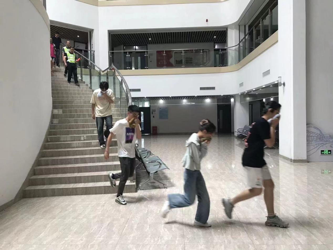 演练前实验中心杨慧斌副主任先向同学们进行了实验室安全教育,指出了实验室目前存在的一些安全问题,近年来部分高校出现的安全事故。实验中心马西沛主任介绍了习近平总书记关于安全生产重要论述,并强调了火灾逃生的注意事项以及演练要求。本次消防逃生演练模拟了8号楼三楼一实验室发生火灾,师生紧急疏散。演练开始后,各楼层引导员引导员工按照逃生路线进行逃生,指导并帮助员工做出正确逃生姿势。消防逃生过程中师生们按照逃生技能,使用湿毛巾捂住口鼻,弯腰并小步快走,最终撤离到大楼门口安全地带集中清点人数。整个演习过程紧张、有序,达到了消防演练的目的。