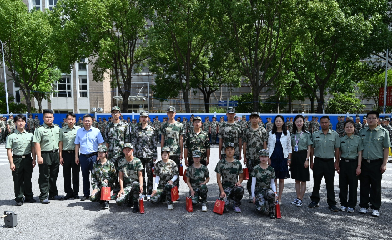 虞蓉书记肯定了前阶段的军训成果,对教官们的辛苦付出表示感谢。她希望同学们继续以饱满的热情和高昂的斗志投入训练,虚心向我们优秀的教官学习;她要求同学们要在军训期间,磨练坚强意志,锻炼强健体魄,力求精神、品格、体魄大丰收。