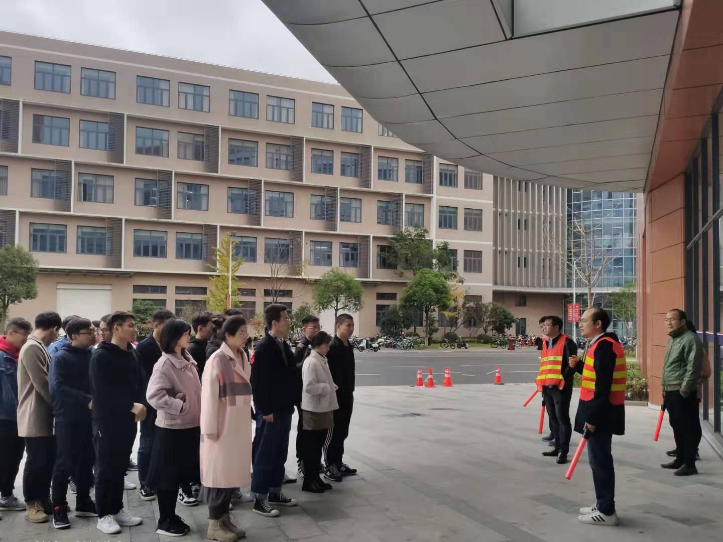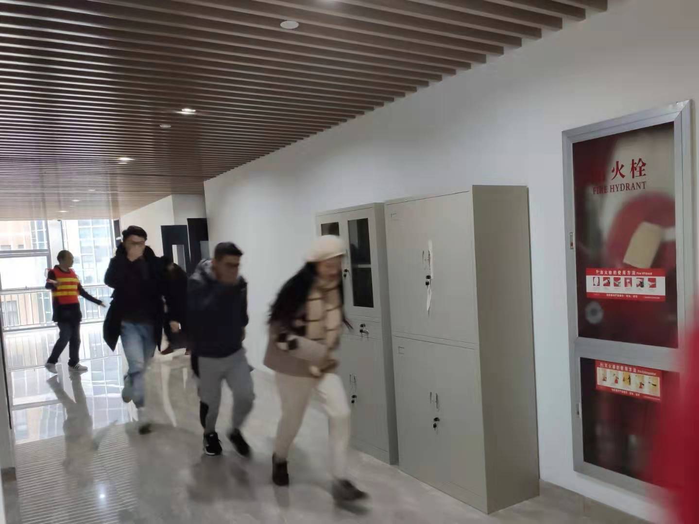 本次演习模拟8B323机房发生火灾,师生组织进行疏散的情况。参加人员包括实验室教师以及在新大楼学习的研究生同学。演练前,杨慧斌老师给员工讲解了如何进行逃生的方法、逃生时的注意事项,以及平时在使用实验室过程当中的安全规范。逃生过程中,同学们听从引导员指挥,按疏散路线有秩序地迅速撤离;达到集合地点后,员工干部迅速整理队形并清点人数,向实验室老师汇报,整个演练活动井然有序。