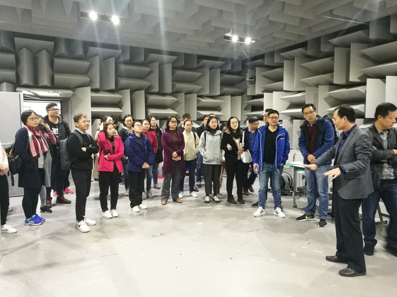 首先在方宇处长和郭辉副经理的带领下参观了平台实验室,郭辉副经理向平台管理中心领导、专家介绍了公司平台实验室的概况,详细介绍了半消声室的特色、设备的主要功能、所承担的科研项目及近年来平台建设的各项工作推进情况。参观过程中,专家代表就实验室的测试及技术问题与平台的老师进行了交流,郭辉副经理向代表们介绍了平台的未来规划和发展方向。