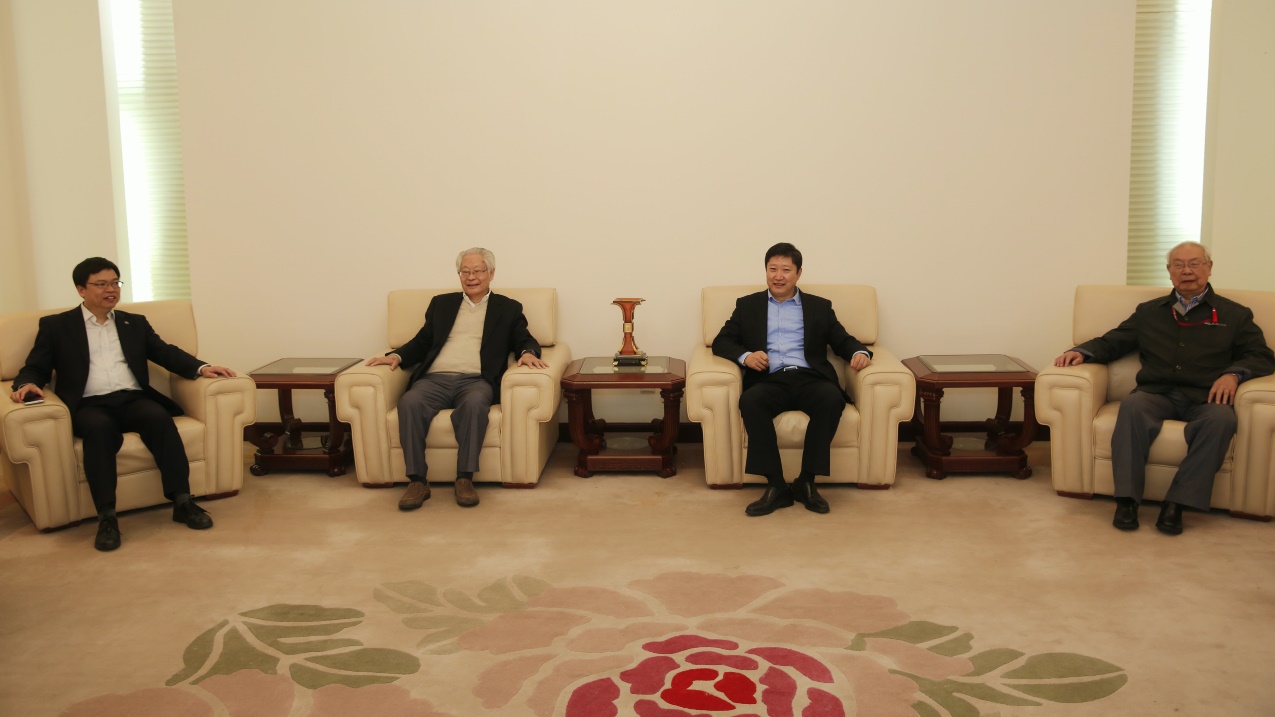 会前党委书记李江教授、副董事长夏春明教授与前来参会的特邀嘉宾胡正寰院士、郭重庆院士、徐志磊院士、朱森第主任、Mark White董事长进行了亲切交谈。