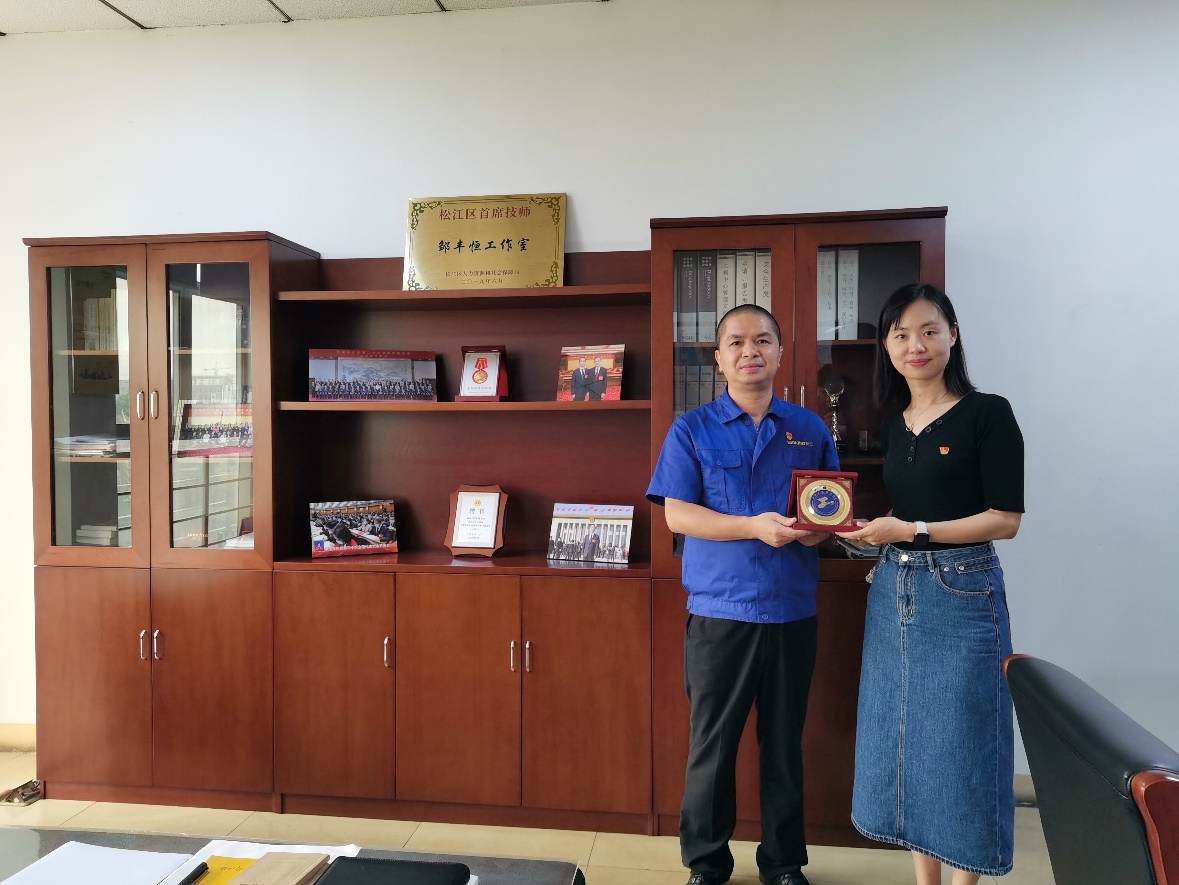 邹丰恒员工对公司的到访表示热烈欢迎,他回顾了自己二十年来作为第一批技术骨干在生产制造一线奋战和成长的励志经历。邹丰恒员工凭借过硬的技术水平和孜孜以求的匠心精神,先后获评“上海市农民工先进个人”、 “全国优秀农民工”、领衔成立了“松江区首席技师邹丰恒工作室”、并光荣当选了党的二十大代表。从焊工学徒到技术尖兵,邹丰恒员工在平凡的岗位上做出了不平凡的业绩,也见证了中国制造业飞速发展的光辉历程。