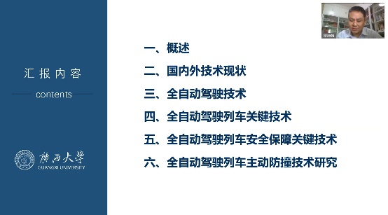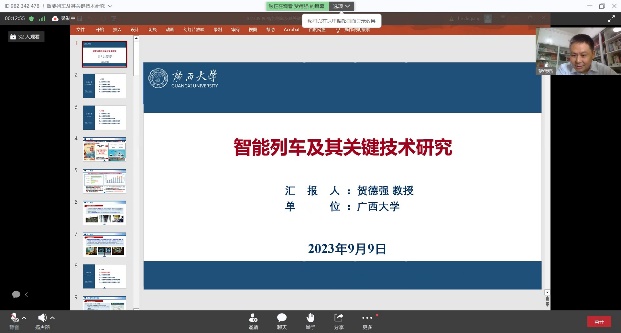2023年9月9日9:30,通过华为云会议视频平台,邀请广西大学机械工程公司副经理、博士生导师贺德强教授为暑期公司做题为《智能列车及其关键技术研究》的线上专题讲座。讲座由yl6809永利经理方宇教授主持。