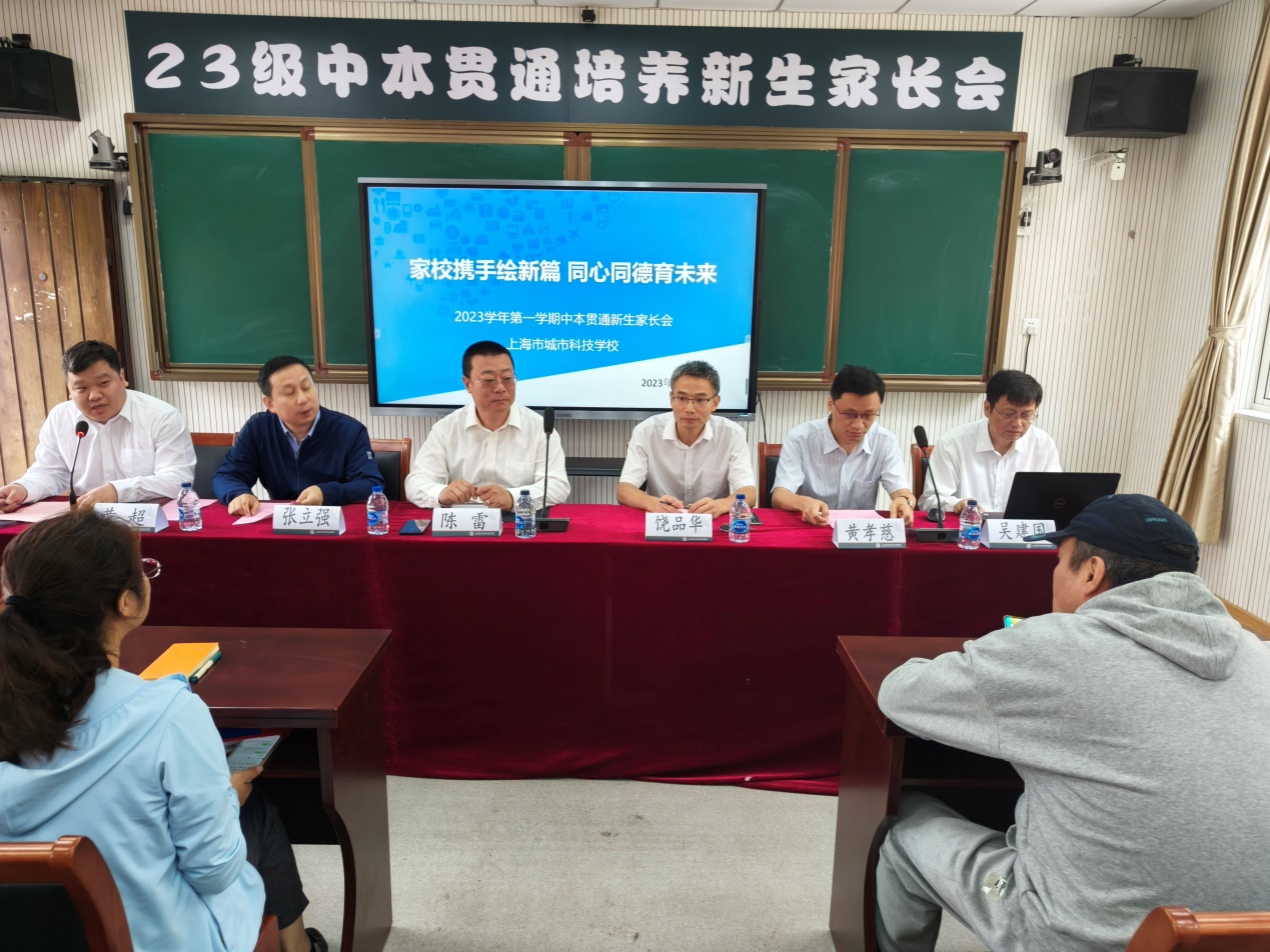 “求木之长者,必固其根本。”为更好落实立德树人根本任务,切实将主题教育学习调研、检视整改成果转化到育人工作的实际行动中。2023年9月23日上午,yl6809永利联合上海市城市科技公司召开2023级中本贯通培养新生家长会。上海市工程技术大学教务处处长饶品华、上海市城市科技公司董事长陈雷、yl6809永利副经理张立强、汽车服务工程系主任黄孝慈、上海市城市科技公司综合教育系主任吴建国以及中本贯通培养班全体家长参加会议。会议由上海市城市科技公司副董事长黄超主持。