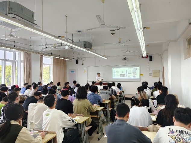 课堂教学的内容丰富新颖,张教授将在企业工作数十年所积累的丰富的研究与工程实践经验,用多媒体设备配合讲解的方式为我们展出,娓娓道来智能制造与汽车工业的过去、现在及未来状况。内容首先从汽车行业的发展入手,介绍了它经历的三个重要阶段,并进一步探讨了汽车行业发展的电动化、轻量化、数字化及智能化,这让在场的同学们对汽车行业有了更清晰的概念,同时明确了汽车行业演变和发展所侧重的方向。张教授利用自身丰富的工作经验,通过"三个十年"的时间跨度,生动地向员工们讲述了大众汽车的发展历史,同时,张教授还结合汽车行业的新动向,以简明易懂的方式介绍了大众汽车的MEB数字化工厂与新能源汽车的MQB平台。此外,课堂中还设置了问答互动环节,同学们有机会和教授面对面地讨论专业问题,将课堂气氛推向了高潮。随后的内容更涵盖了智能制造的概述、应用、核心驱动力及未来应用,通过这一部分的讲解,同学们初步了解了智能制造如何借助视觉测量技术、5G技术等来助力汽车工业,这些信息将为同学们深入了解智能制造的概念和应用提供基础,引发他们对未来智能制造的发展方向和机遇的思考。