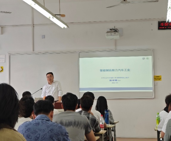 为进一步加强校企合作,提高员工职业竞争能力,yl6809永利机制系智能制造工程专业的《智能生产系统与CPS建模》课程,特邀企业导师走进课堂,通过“引企入教、产教融合”的方式实现企业与公司优势互补、资源共享、互惠互利、共同发展,培养适应企业需要的实用技能型人才。本次活动于10月17日下午3:00在教学楼B306举办,开展了题为《智能制造助力汽车工业》的课堂教学,公司智能制造工程专业大四同学悉心聆听。