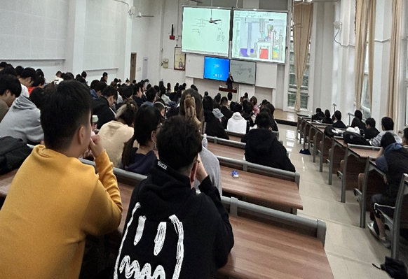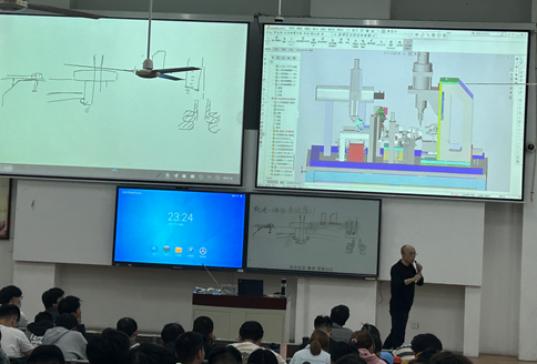 霍韫钧员工以八工位自动铆接机为例,从方案设计、材料选择、零部件选型及设计等方面详细讲解了机电产品的设计过程及所需专业知识,生动展示了机械工程师的职业素养。课堂教员工动活泼,员工互动积极,拓宽了员工对机械工程专业的理解与认识;课后霍韫钧员工针对员工就业择业等问题做出细致的解答和建议,使员工们受益匪浅。
