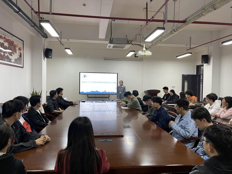 三位研一同学分享了自己考研时的学习故事和复习规划,结合自身考研阶段的经历为学弟学妹们提出了许多宝贵经验。如“数学和专业课是上岸的关键,要抓住这两门课提分”、“政治要重点抓选择题”、“英语要针对自己的弱项进行专项训练”、“少看视频,多动手做题”、“重视错题分析”等,同时还分享了复习期间调整心态的好办法。并且鼓励大家积极报考本校研究生,提前准备复习,稳住心态,稳扎稳打,保持复习节奏,劳逸结合,全力以赴。在场的同学们积极讨论交流,分享了自己目前的复习进度,就如何选择公司、如何选择导师、专业课复习等困惑及下一阶段的复习规划也纷纷提出自己的疑问并得到学长学姐们的热心解答。