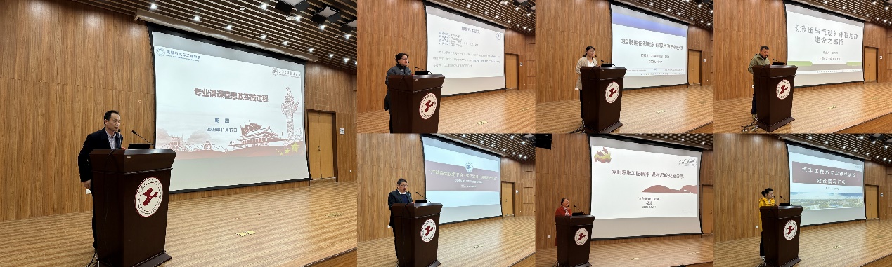 会上,邓胜祥、刘飞、范志毅、黄双、马芳、王兆强六位老师分别从引导员工坚定理想信念、厚植爱国主义情怀、加强品德修养、增长知识见识、培养奋斗精神、增强综合素质等方面,作《产教融合视角下的生产实习课程思政实践》、《汽车工程系课程思政建设情况汇报》、《材料力学》等课程思政理论、案例的分享、交流。
