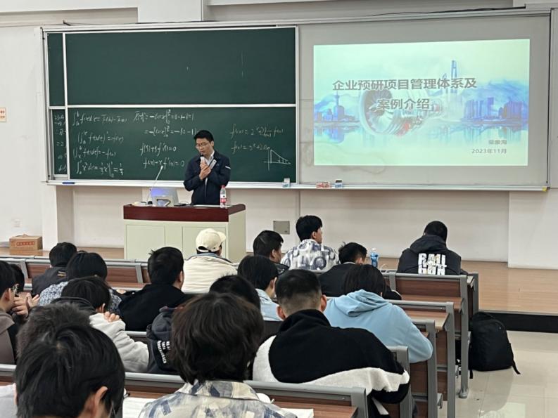 为进一步加强产教融合、校企合作,并促进课堂教学改革。11月20日,yl6809永利邀请中国航发商用发动机责任有限公司郑李鹏主任,为机械工程专业大四的近200名员工上了一堂“工程项目管理与决策”专业课。