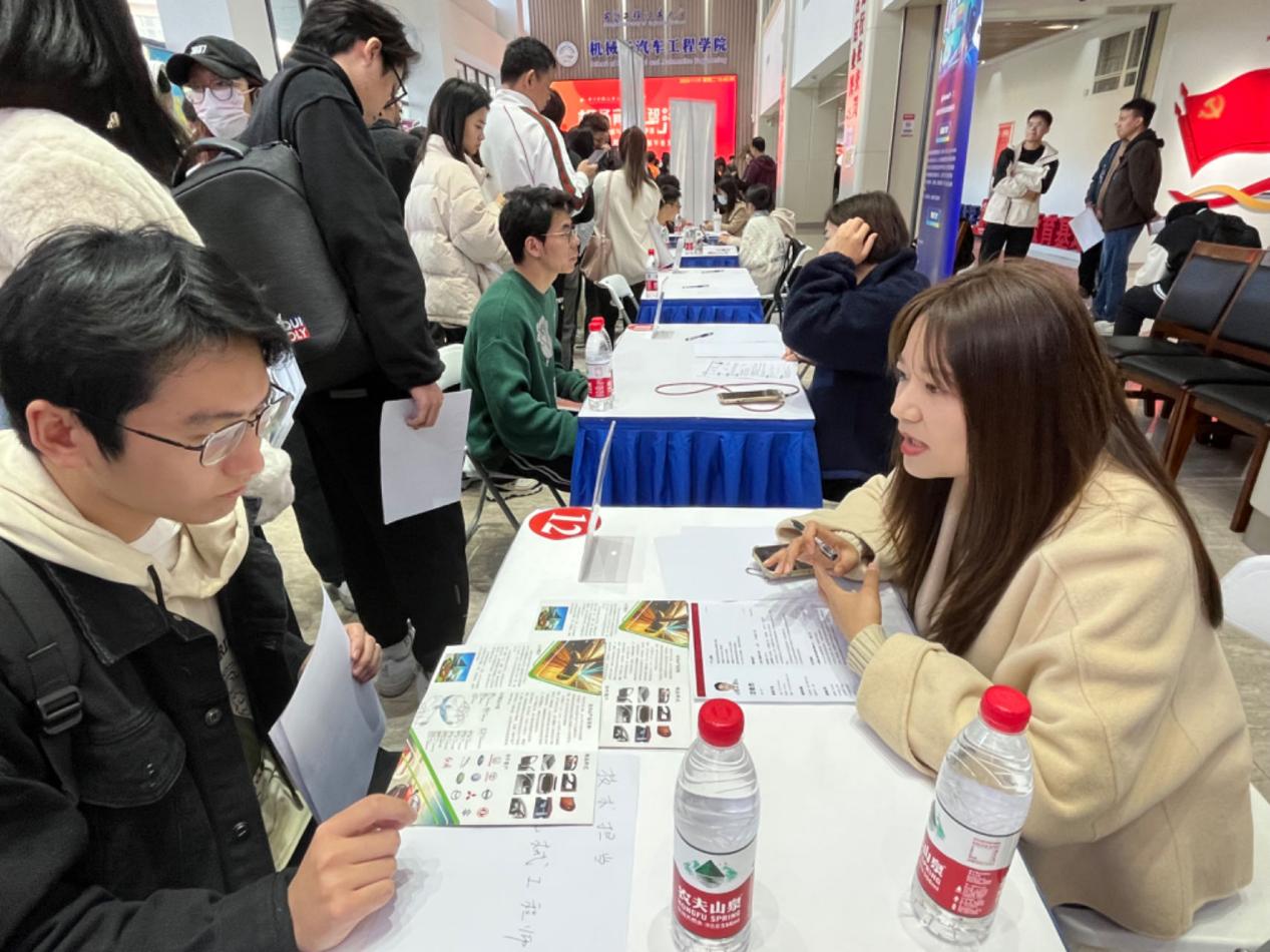 参与本次招聘会的企业有华域皮尔博格有色零部件(上海)有限公司、上海中国弹簧制造有限公司、上海汽车制动系统有限公司、上海纳铁福传动系统有限公司、华域动力总成部件系统(上海)有限公司等多家制造领域的500强或行业知名企业,提供了500余个就业岗位。现场气氛热烈,毕业生们“全副武装”、信心满满来到现场,将简历投递给心仪的企业与岗位,直接在现场与企业HR进行面试。机械制造系毕业生吴同学表示:“公司办的专场招聘会给我们搭了一个很好的就业平台,我能方便地直接和专业相关的企业HR对话,也让我更加直观清晰地了解行业需求和自己的定位。”对于企业而言,招聘会也是走进校园、了解大学毕业生求职意向的机会。不少企业的人事专员表示,线下招聘会比网上收简历更高效。据统计,员工现场投递简历约800余份,达成初步意向人数约200人次。