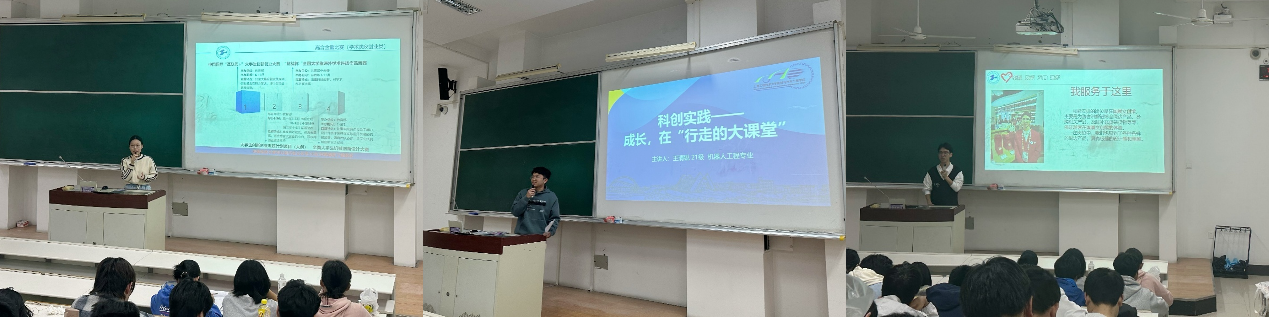会上,来自汽车服务工程专业、机器人工程专业和智能制造专业的三位国家奖学金和上海市奖学金获得者朱冰婧、陶亚飞和王清锐同学为大家分享了自己的学习经验、科创经历和志愿服务事迹,介绍了老员工创新实验室平台以及各类创新实践活动的申请渠道。为在座的学弟学妹提供了全面完善的学习指南。