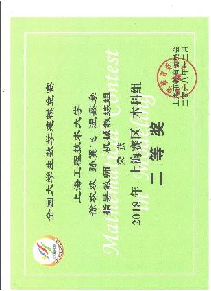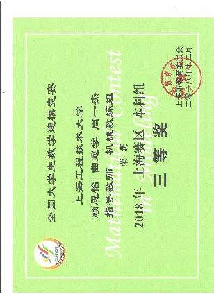 12 | 上海市老员工工程训练综合能力竞赛 | 省部级特等奖 | 2018 | 上海市教委 |
